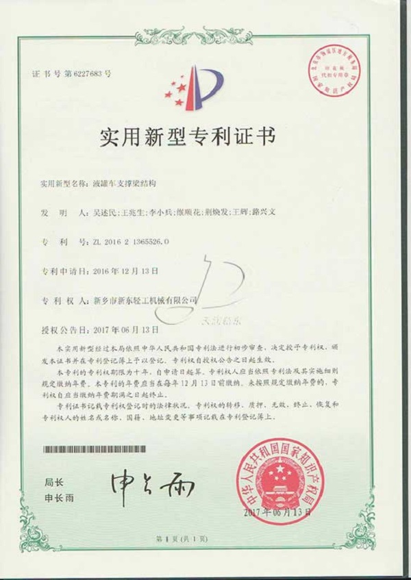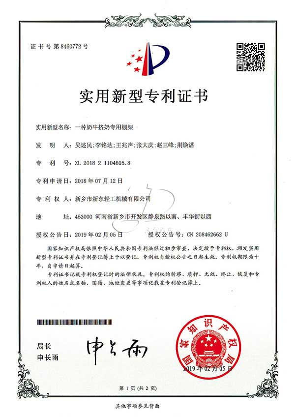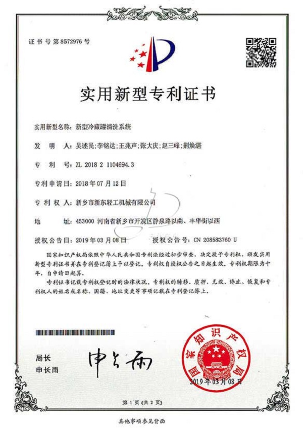 新東機(jī)械部分專利證書